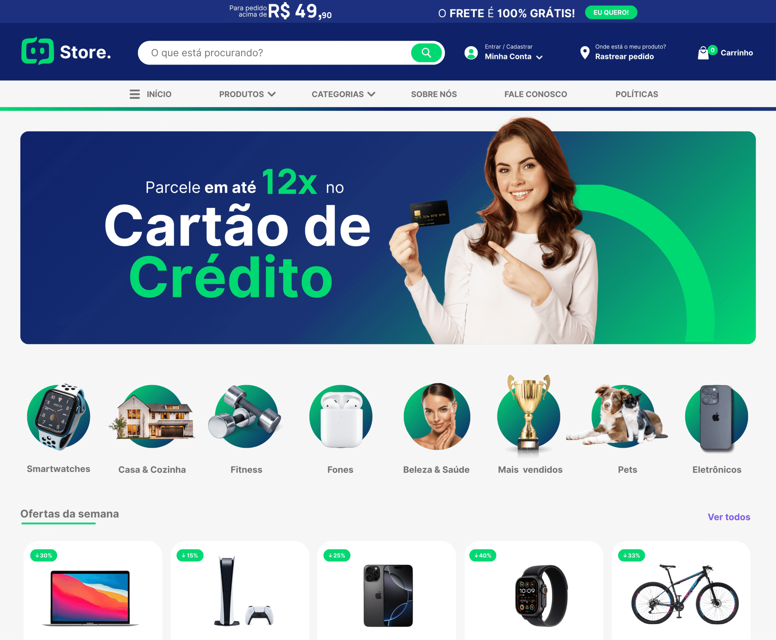 Criação de lojas virtuais que se adaptam perfeitamente a diferentes tamanhos de tela e dispositivos.
